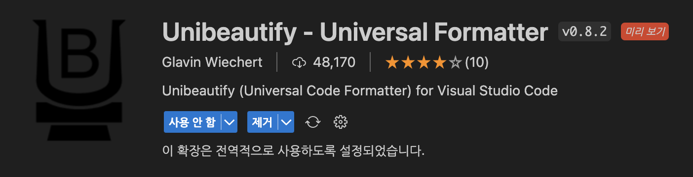 Unibeautify 확장자 설치
