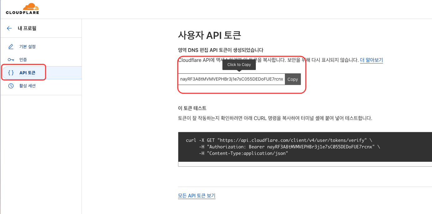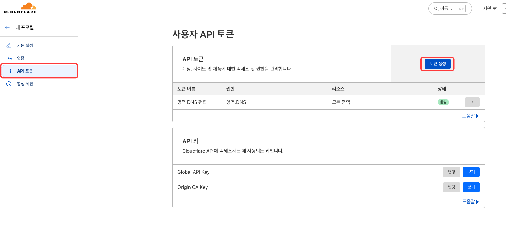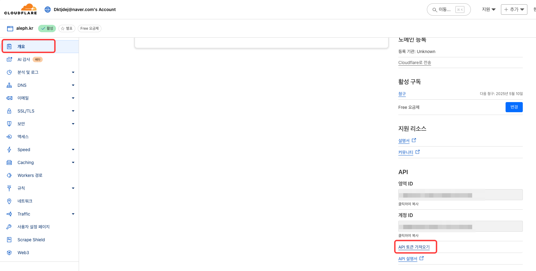 1. 개요 탭에 접속하여 하단에 있는API 토큰 가져오기 페이지로 이동한다.
