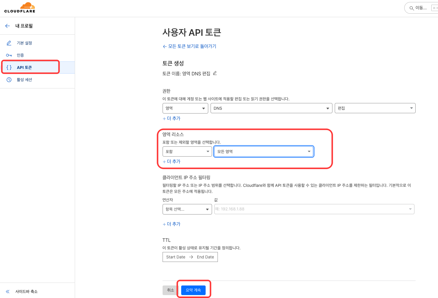 4. 영역 리소스를 모든 영역으로 설정한 후 요약 페이지로 이동한다.