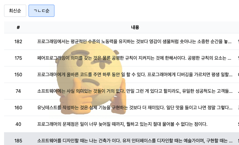 이번에는 docker 컨테이너로 구성된 psql 서버라서 단순 한글 정렬로부터 파생된 추가 작업이 꼬리에 꼬리를 물고 이어지기 때문에 너무 귀찮아 임시방편으로 처리하게 되었지만 다음에 한글 정렬을 구현할 때는 데이터베이스 생성 시부터 ko_KR.utf8 로케일을 지정할 수 있도록 해야겠다.
